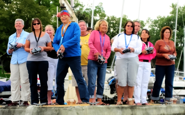 Canandaigua Lake Women's Series RC Laser racers competing on Sunday, 9/11/11 (those with transmitters in their hands) from L to R: Maggie Atkins, Leslie Bennett, Anna Gorbold, Terry Schmidt, Christine Stebbins, Anne Lambert and Tracy Blevins.