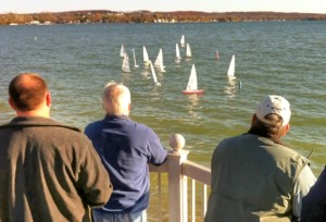 Steady winds from the south, “B” sails, a little chop on the water and temperatures in the 60’s made for a very enjoyable afternoon of RC Laser racing from the gazebo deck in Kershaw Park on Canandaigua Lake on Sunday. The 12 sailors who participated added another 9 races to the scores in the 2011 Frostbite Series.