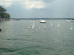 It was a perfect day for racing. Many of us were recovering from injuries’ obtained over the winter, so the fact that the winds were light allowed us to keep up with our boats. It was darn near 80 degrees with plenty of sunshine. Very few pleasure boats were tied up on the dock which made for very few obstacles to avoid.